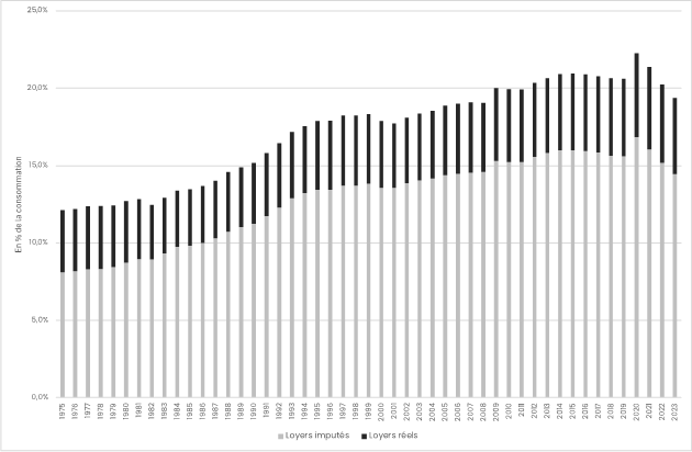 Figure 6. L’évolution de la part des loyers dans la dépense de consommation des ménages de 1975 à 2023